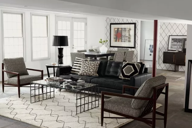 無論是地毯還是布藝,幾何元素的運(yùn)用,彰顯著現(xiàn)代藝術(shù)美感。